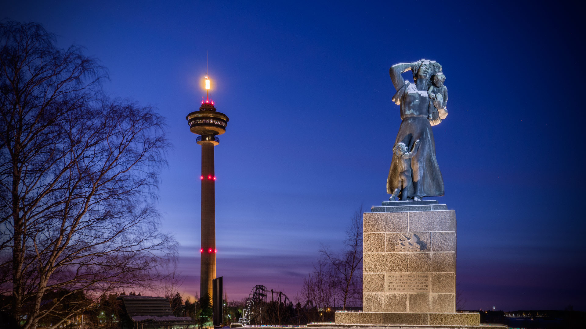 Steamship Kuru was a Finnish passenger ship that sank in the Näsijärvi lake on 7th of Septemper 1929. As the sinking was and still is the worst maritime tragedy in the history passenger and shipping traffic on Finnish lakes, a statue commemorating the disaster of the Kuru was made by the sculptor Yrjö Liipola. The installation highlighting statue is part of the Näsinpuisto park enviromental lighting. The surroundings have been illuminated using warm ambient light and statue is highlighted with cold light using gobo-projection technique.